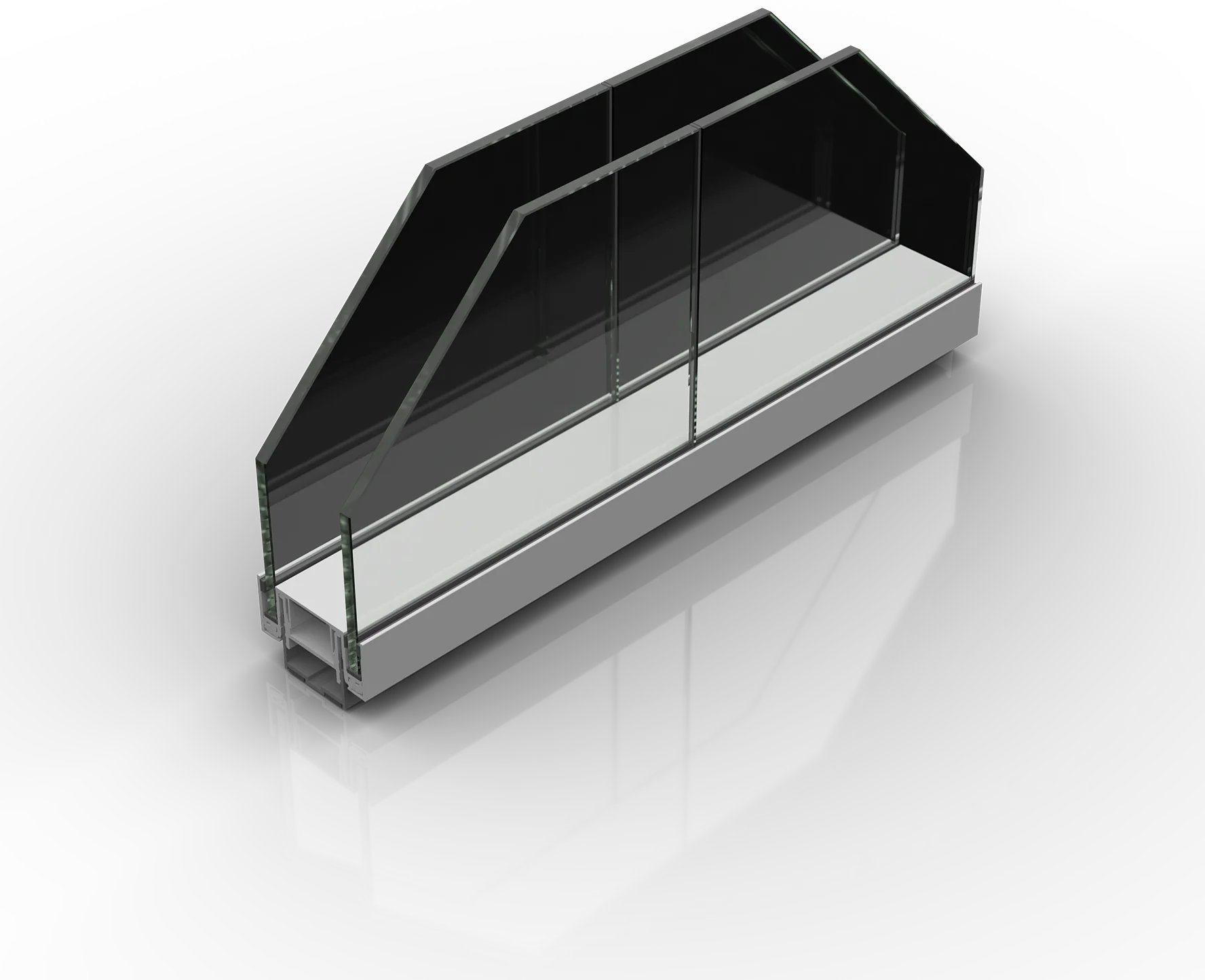 T55 double-pane glazing without vertical profiles, with white bottom and top trim