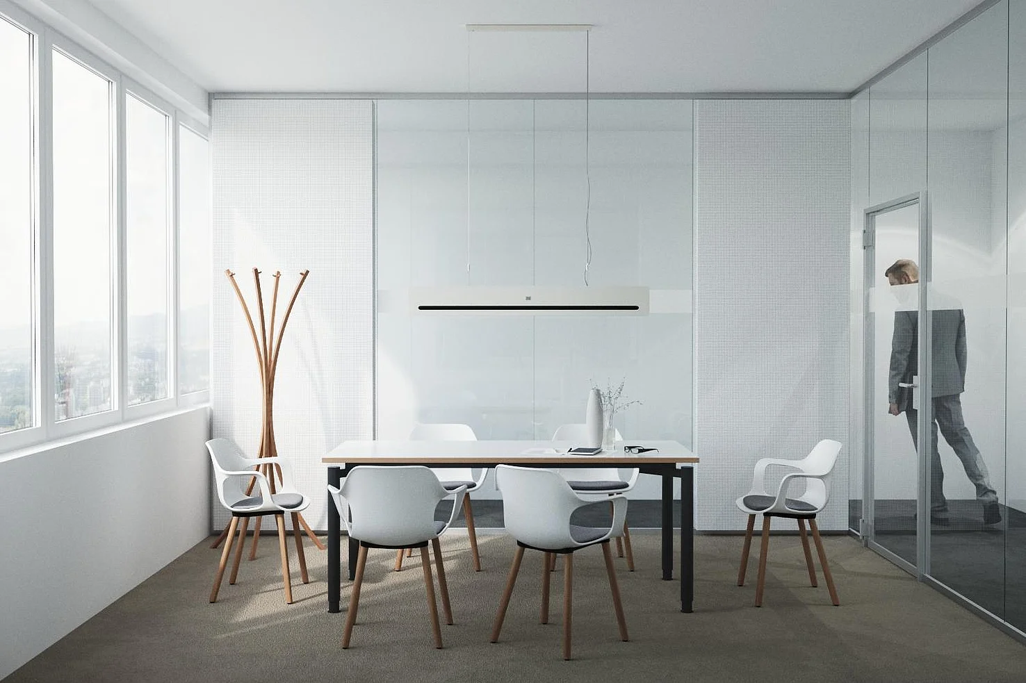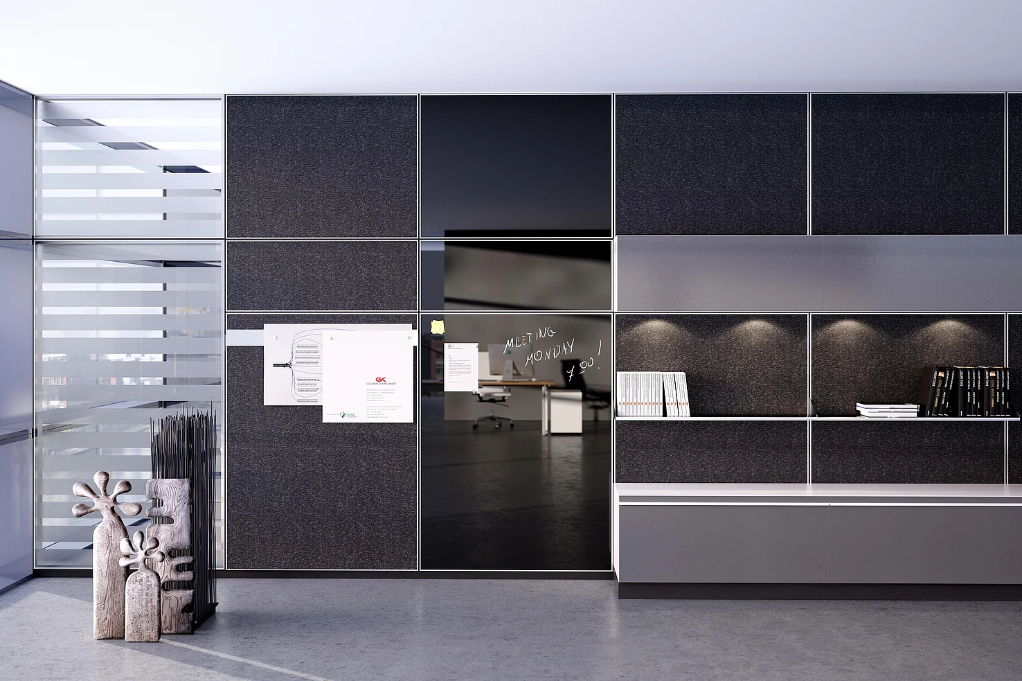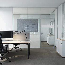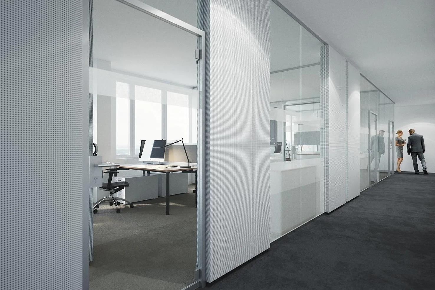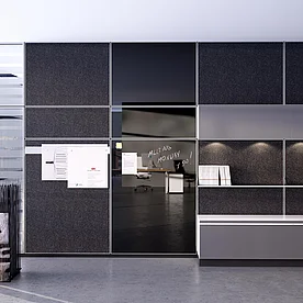 Sound and reverberation times are issues that have become indispensable in modern office design. Partition walls are particularly well-suited as a substrate for sound-absorbing materials in office spaces with extensive glass surfaces or concrete ceilings. However, retrofitting to improve room acoustics is also possible.
