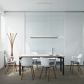 The sonic 10 acoustic element meets the requirements of modern interior design by effectively reducing reverberation times. Current sound absorption achieves an alpha value of up to 0.8 with a sound insulation rating of Rw,p 44 dB (for single-sided installation) and Rw,p 43 dB (for double-sided installation).