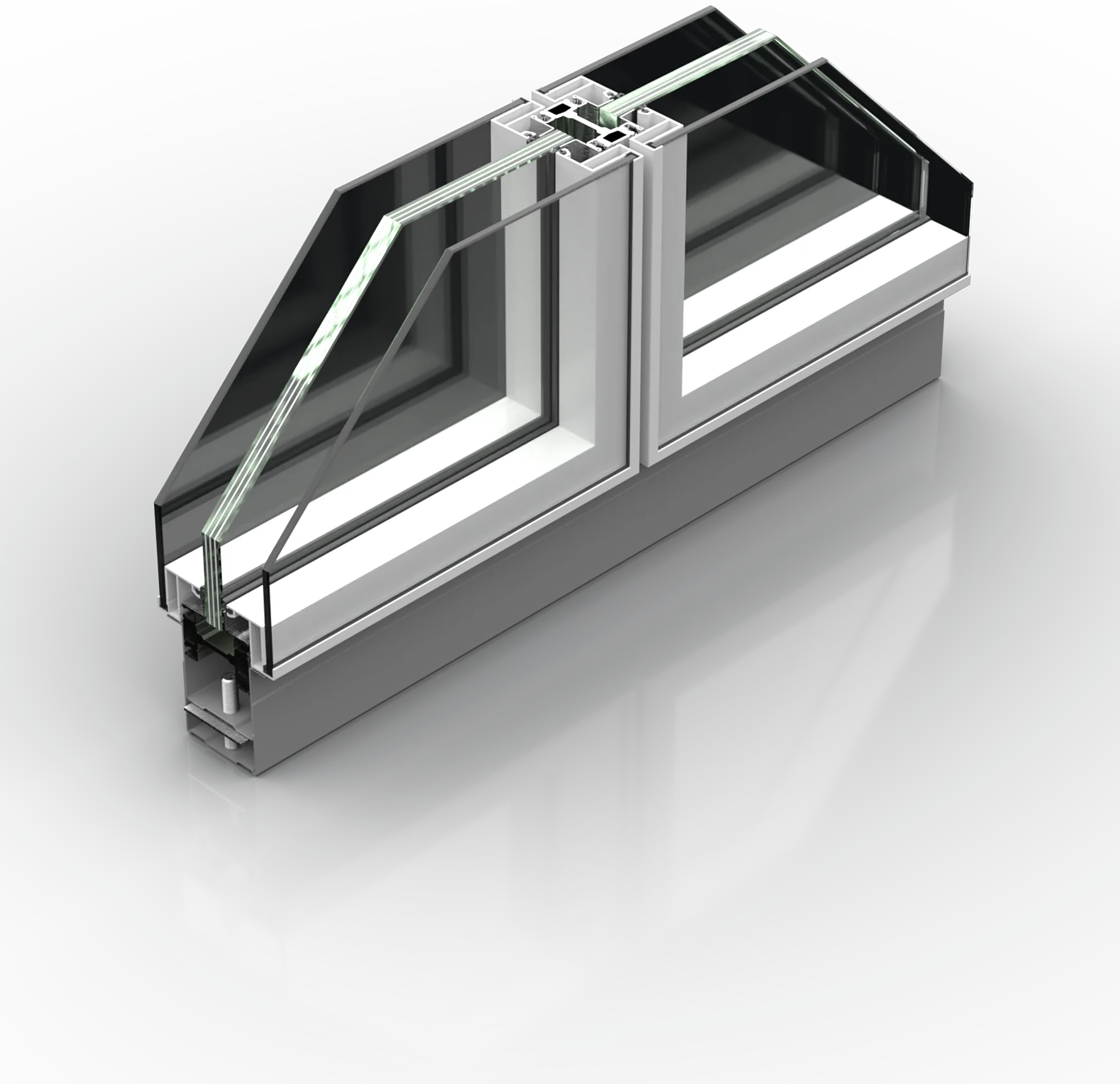Triple-pane glazing, flush with the front, with fire-resistant glass in the center