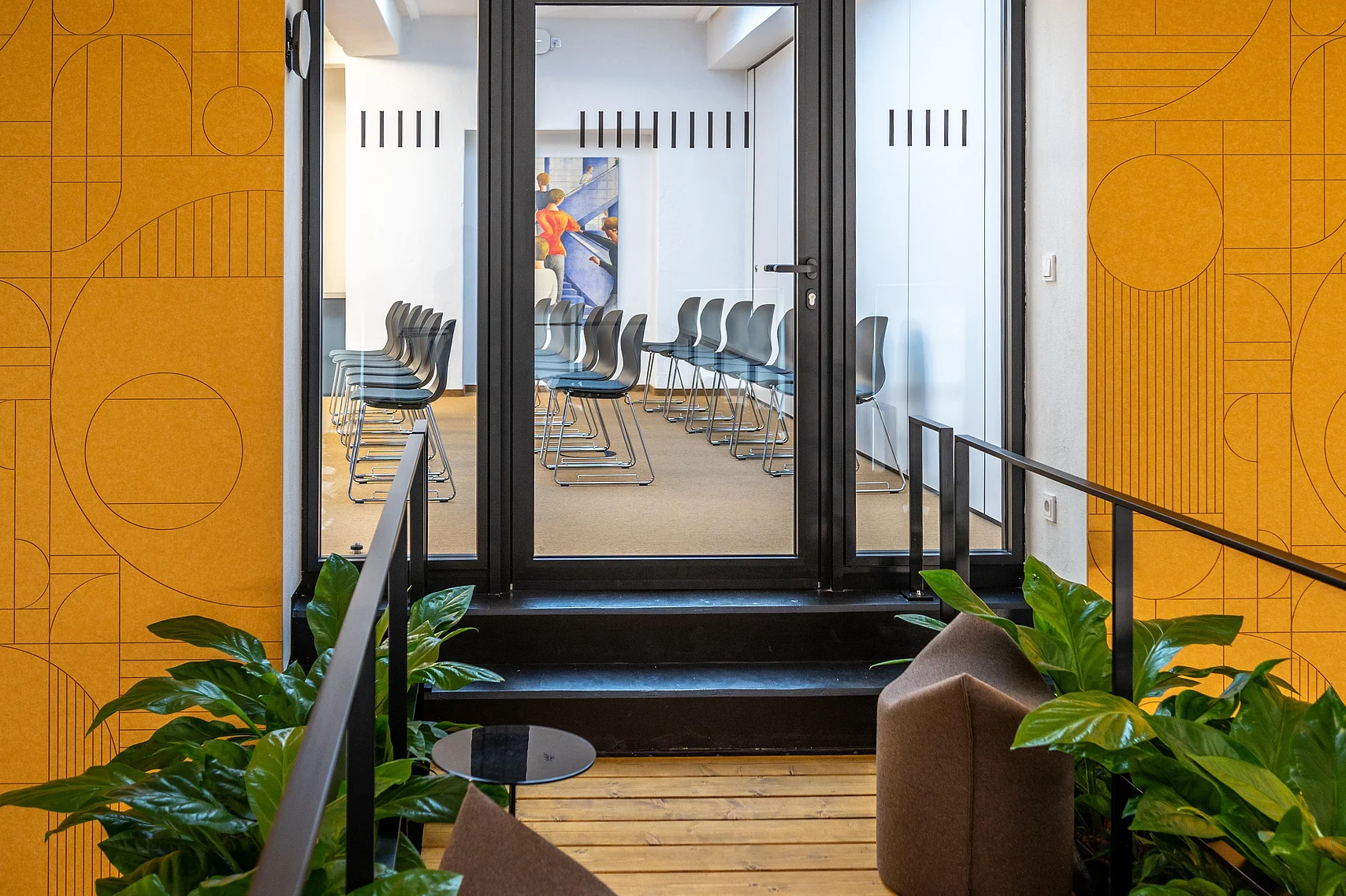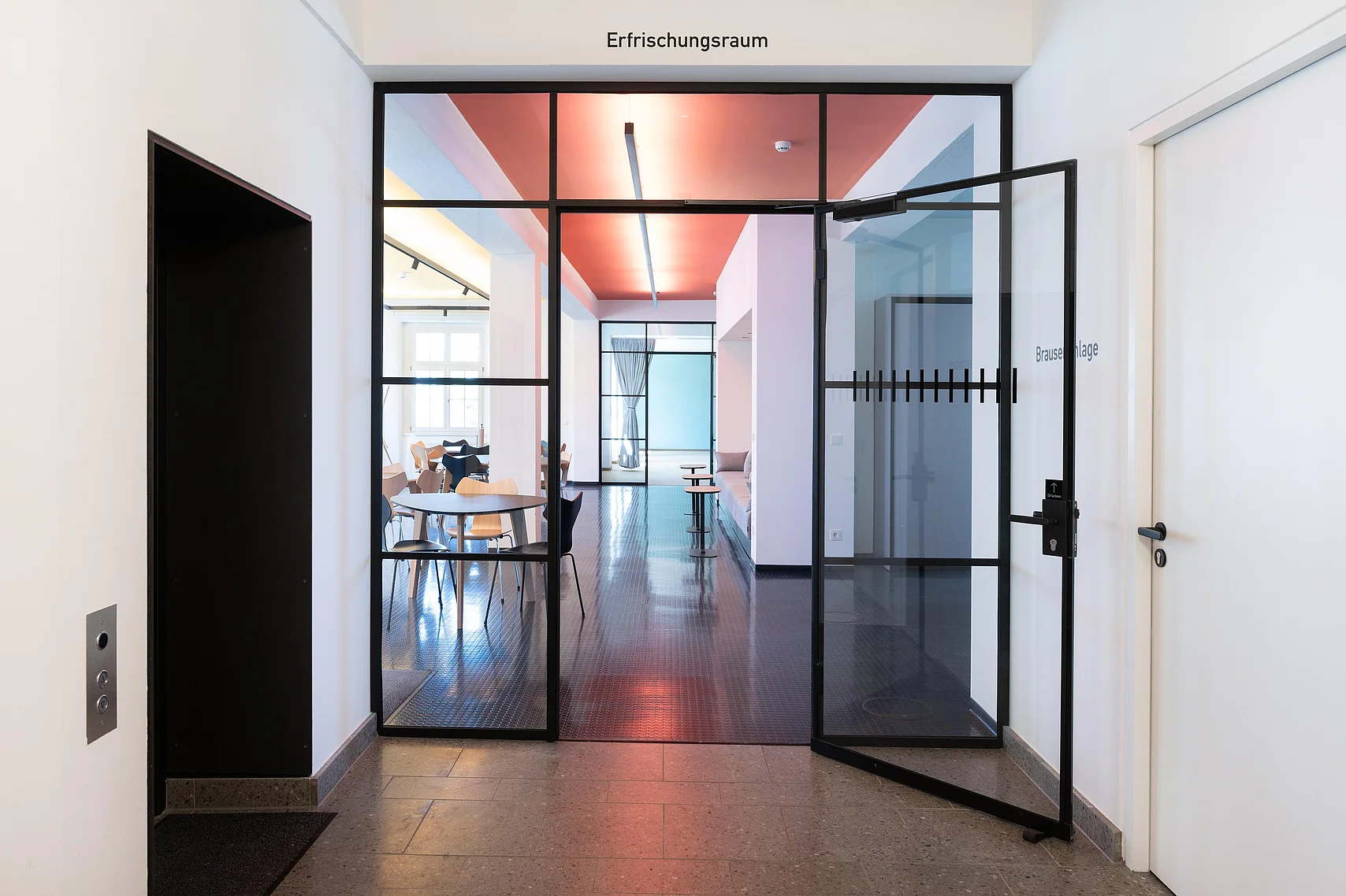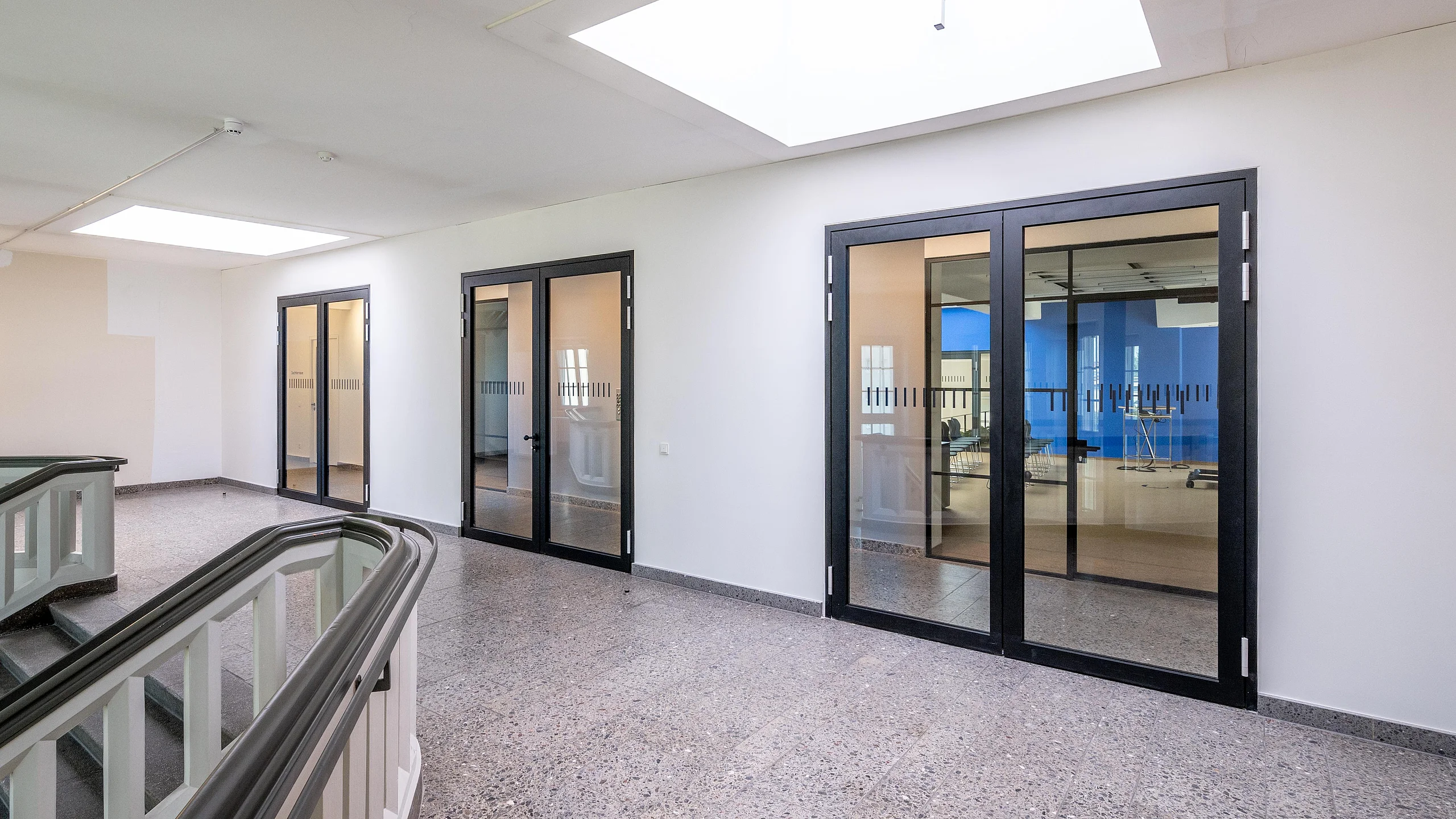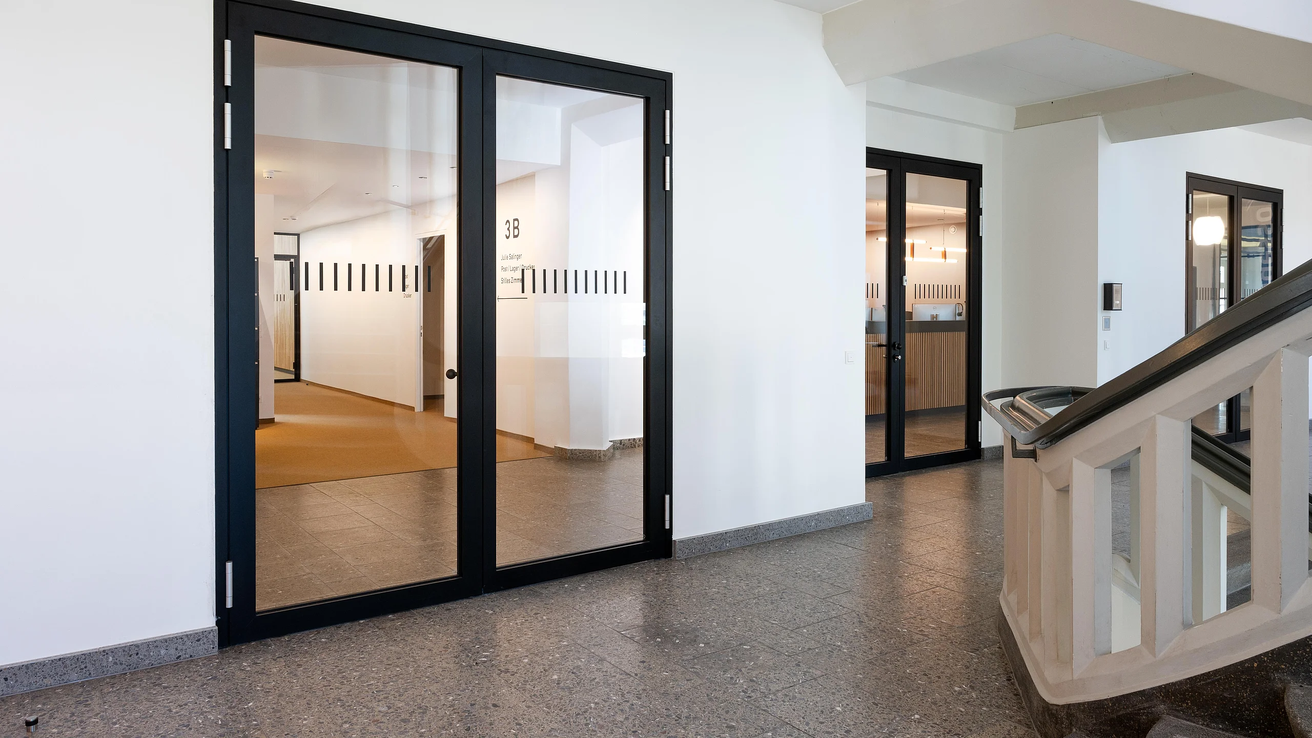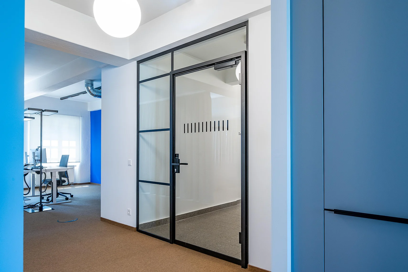Die Glastrennwände und -türen von Goldbach Kirchner passen stilistisch in das Gebäude und sorgen für ein vielfältiges Raumangebot.