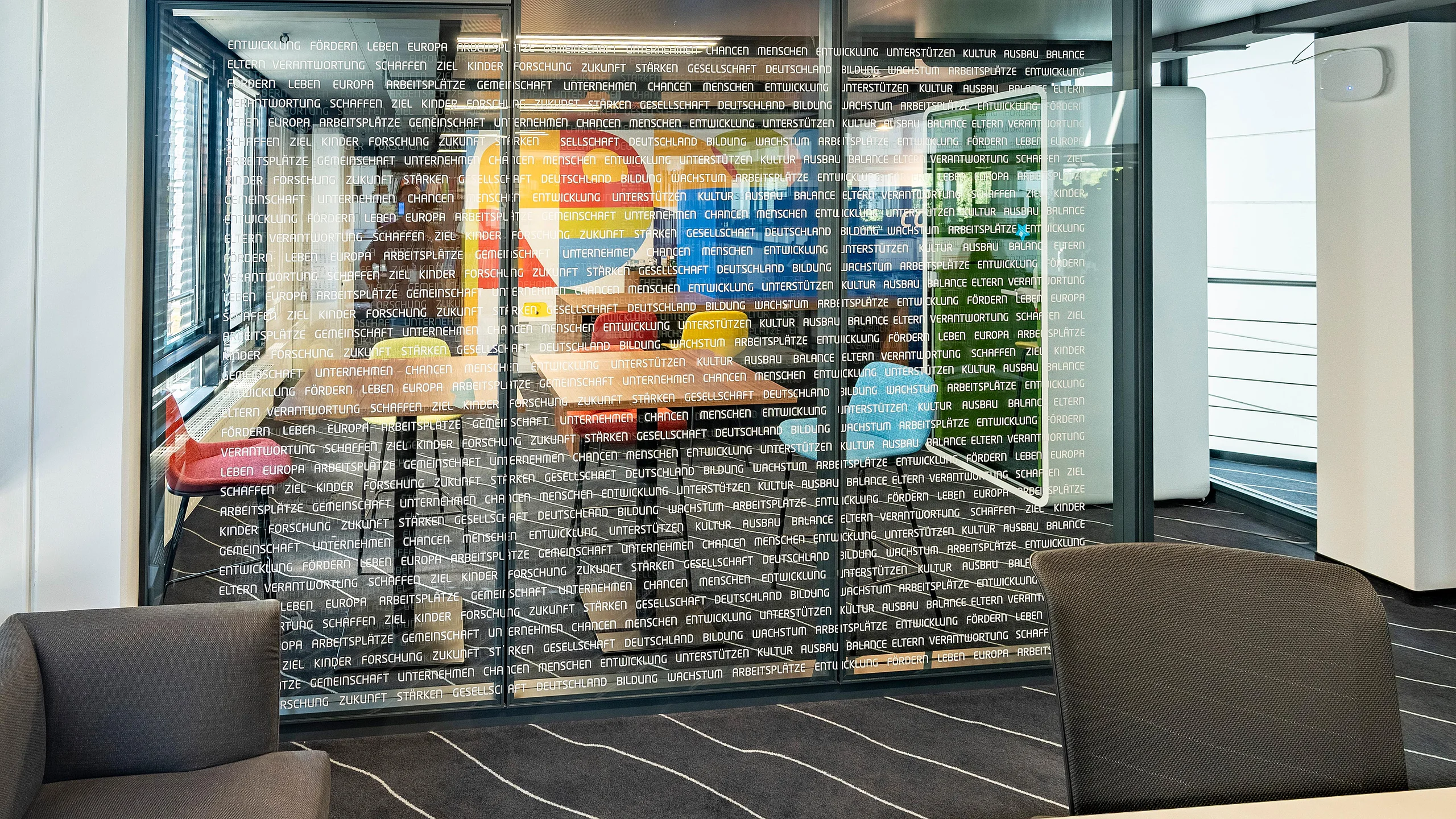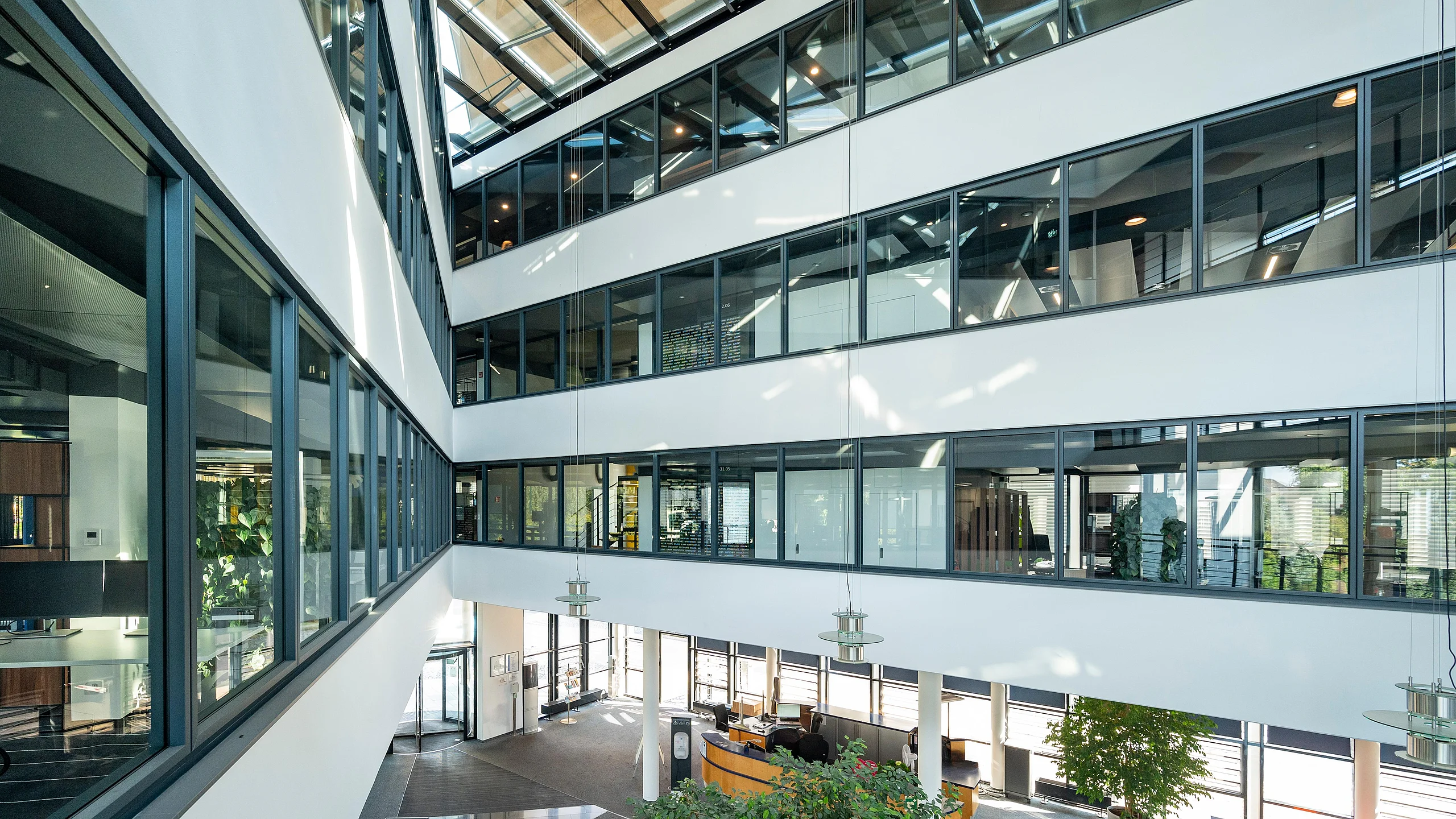 Besonders hervorzuheben sind die eingesetzten Trennwandsysteme aus Glas, wie das System T46 mit absturzsichernder Verglasung F30, das durch hohe Innovationskraft und Nachhaltigkeit besticht. Die Glas-Trennwände ermöglichen eine offene und transparente Raumgestaltung und erfüllen gleichzeitig die Anforderungen an Schallschutz und Brandwiderstand. Glas fördert nicht nur eine optimale Lichtverteilung, sondern schafft auch ein Gefühl von Weite und Transparenz in den Bürostrukturen.