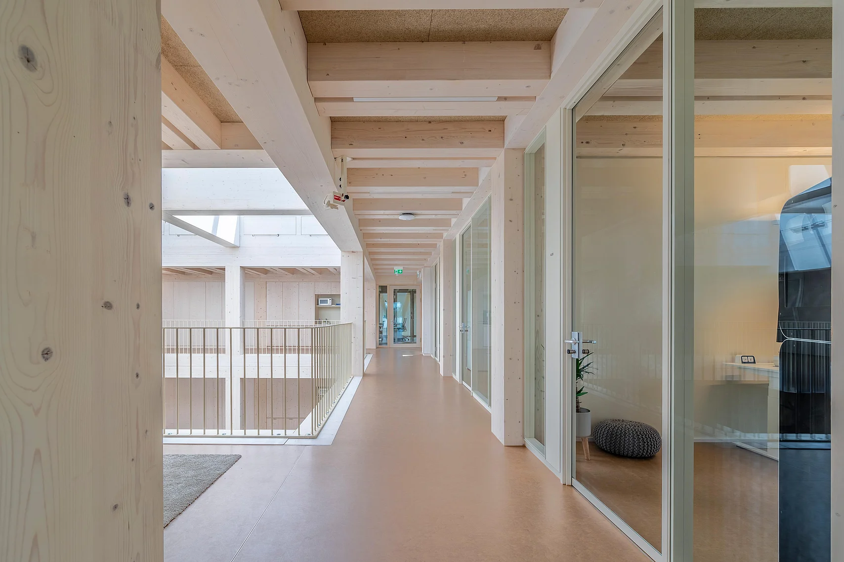 Erbaut von Schweizer Holzbau-Unternehmen Blumer Lehmann bietet das innovative Gebäude eine Arbeitsumgebungen für rund 280 Arbeitsplätzen. Das moderne Betriebskonzept im Plug-and-Play-Stil schafft optimale Voraussetzungen für Startups, Kreative und agiles Arbeiten. Es stehen verschiedene Arbeitsplatzoptionen wie Coworking-Desks, „Privat Offices“ und eine große OfficeUnit zum „All Inclusive Preis“ zur Auswahl. Lediglich der eigene Laptop oder PC muss mitgebracht werden. Zusätzlich zu den flexiblen Arbeitsbereichen gibt es gemeinschaftlich nutzbare und stilvolle Loungebereiche, CoffeeCorners, Besprechungsboxen, Meetingräume und eine Startup-Werkstatt.