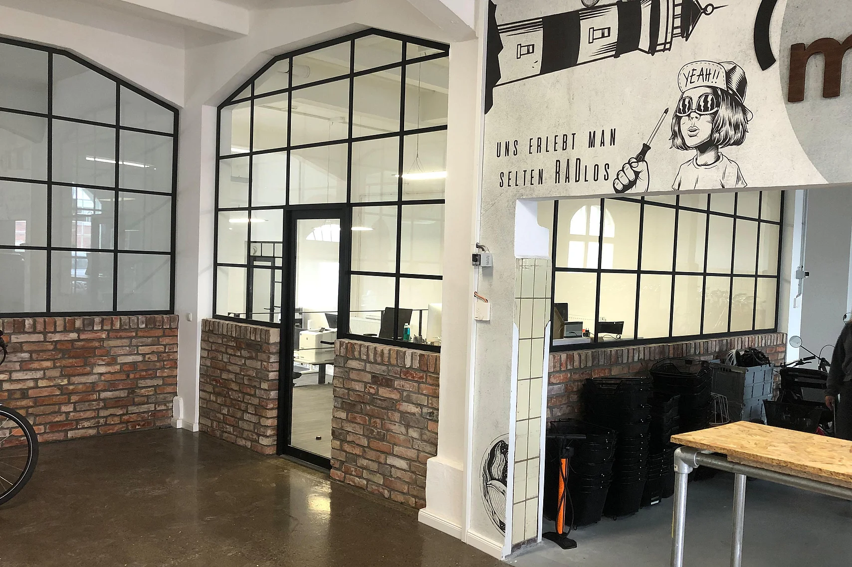 Der Einbau des Trennwandsystems T50 Loft unterstützt im Retro-Style den maritimen Charme der denkmalgeschützten Fischhallen.