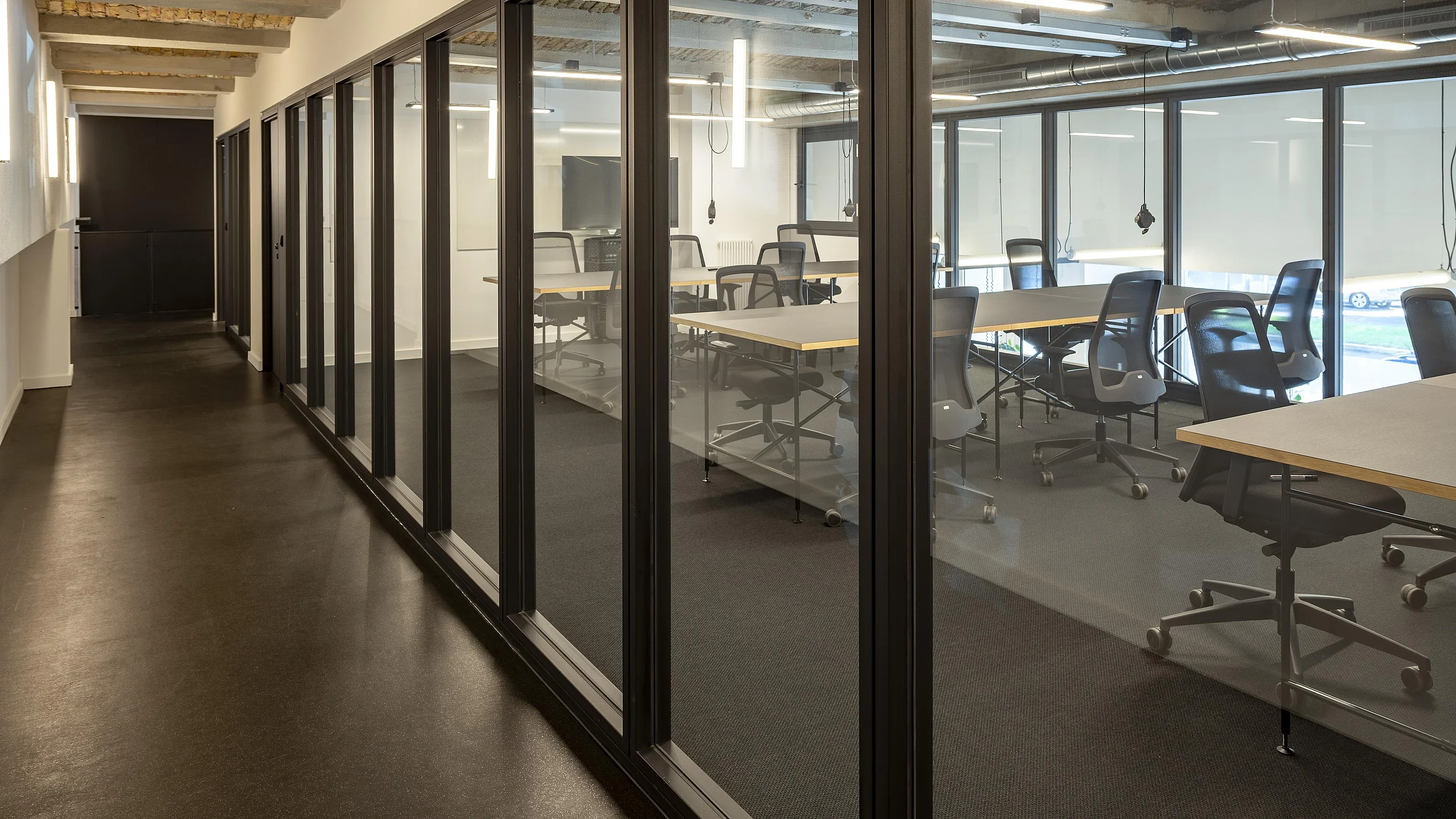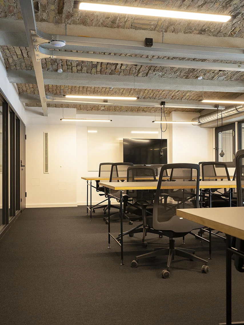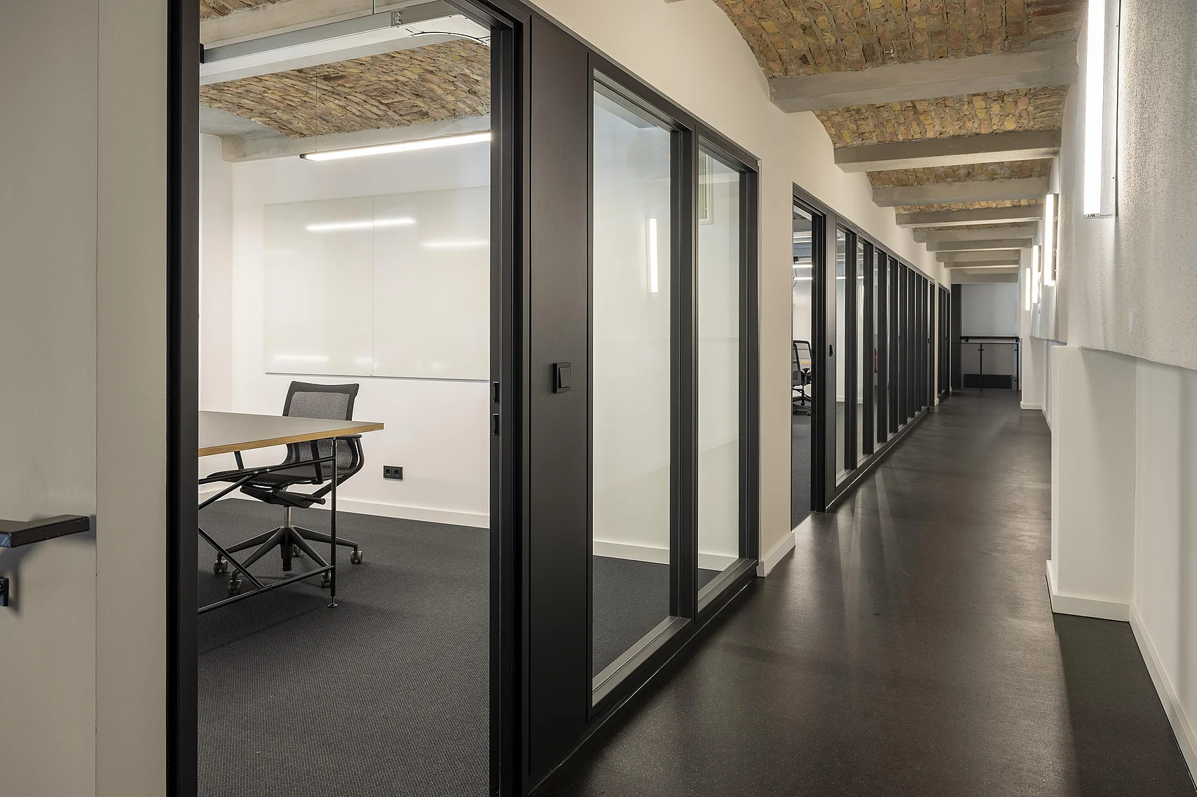 Meetingräume, Konferenzräume, Teamräume, Private Office, Workshops, Zugang zu Member Events sind im historischen Roxy entstanden. Technisch realisiert wurde das Innenraumkonzept mit unserem Trennwand-System T46.