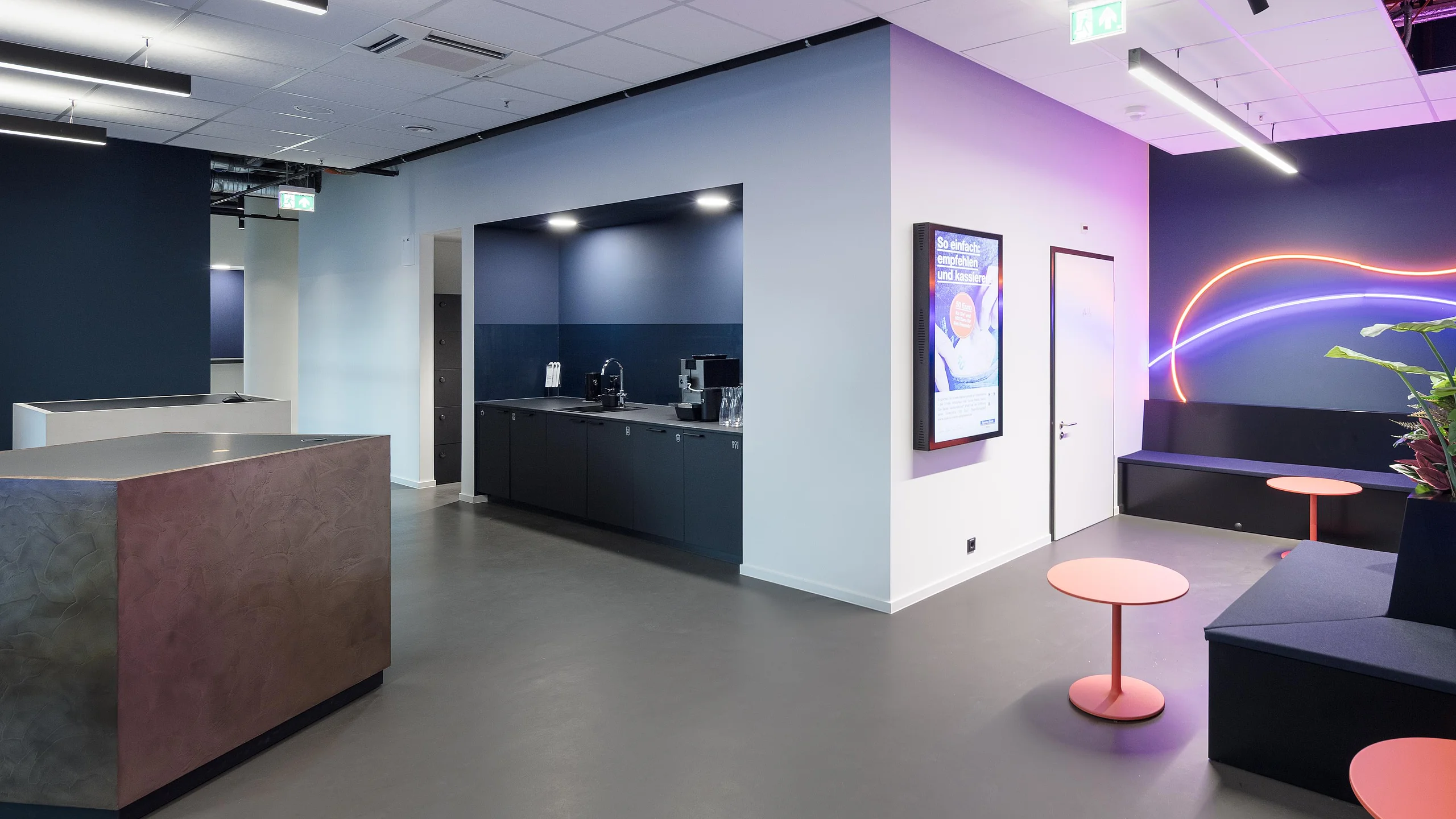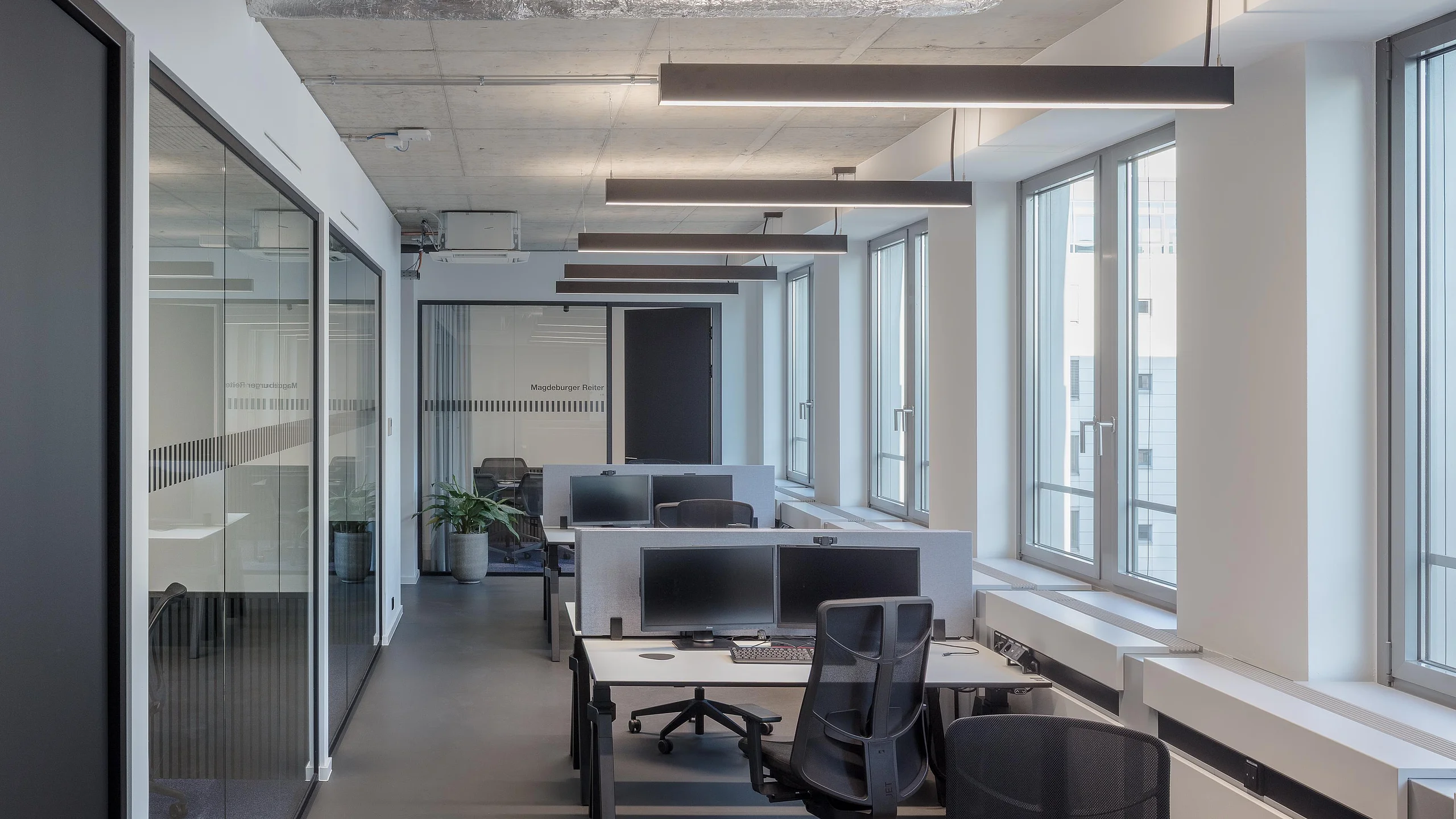 The new room structures support an open company culture: all workers share a modernly equipped working area which also serves as a place for communication with customers. The offered rooms range from optimised free work places to technologically advanced meeting rooms and an inviting space.