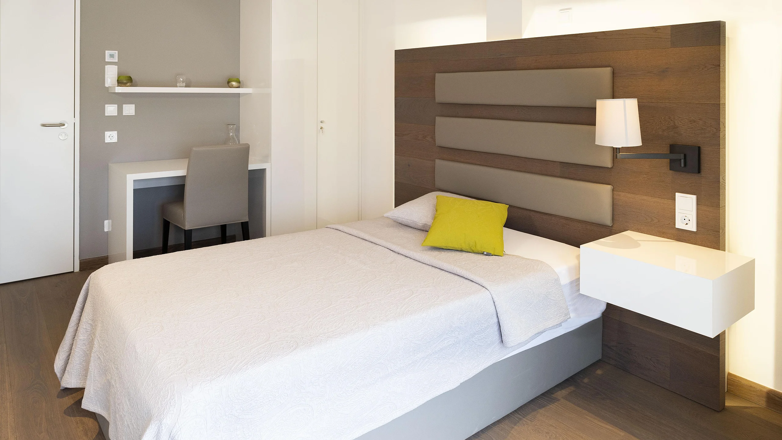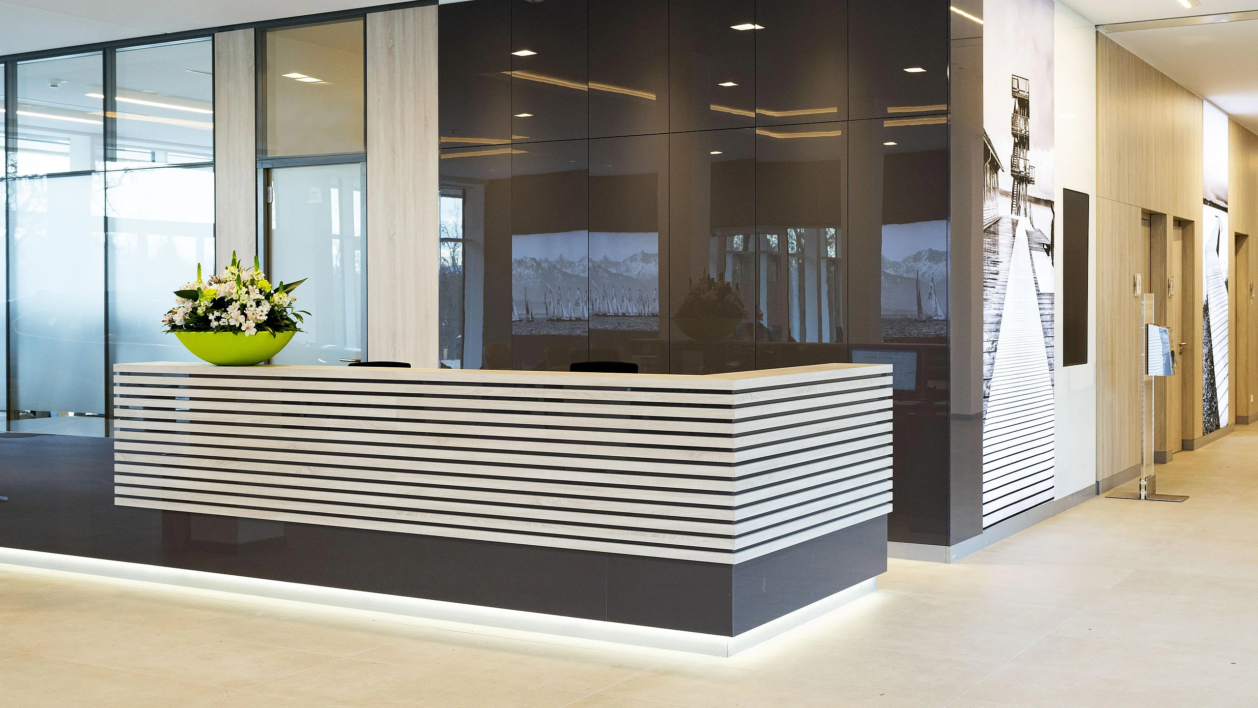Angenehme Farbtöne, große Räume, jede Menge Glas, übergroße, farbenfrohe Landschaftsfotos und ganz viel Licht.