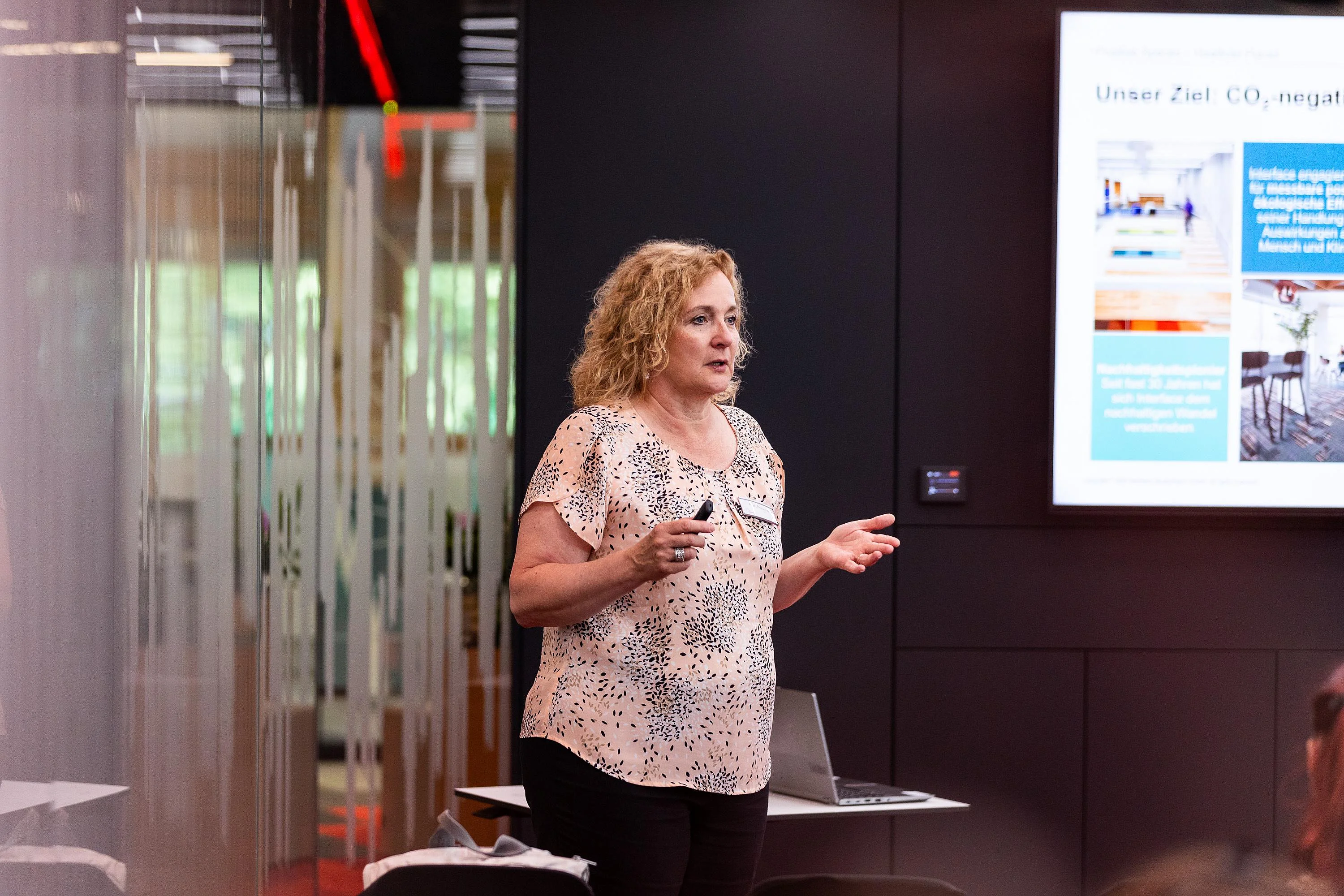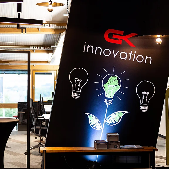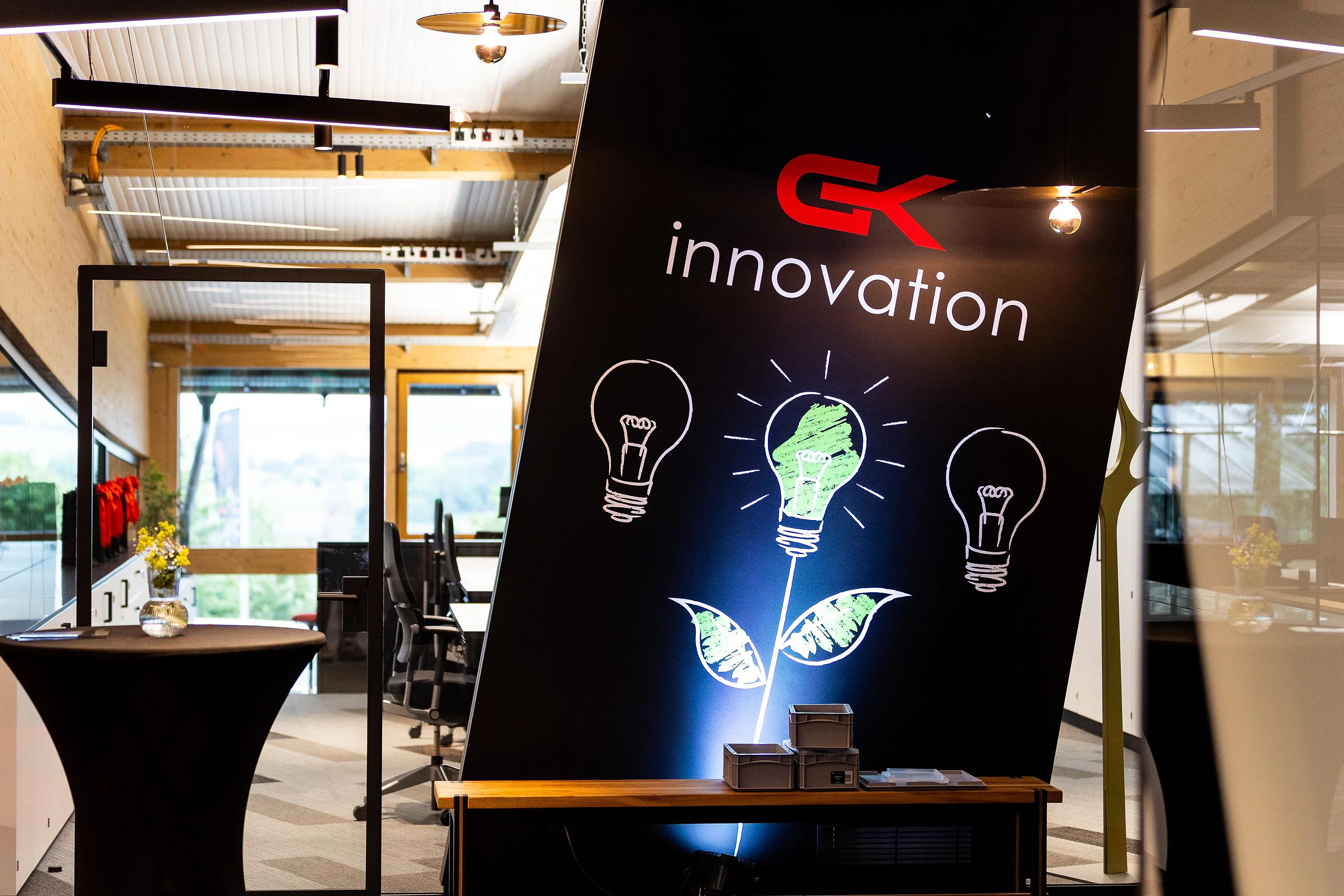Neben der regionalen Verbundenheit, welche sich in einem beeindruckenden Konferenztisch aus dem Stamm eines örtlichen Apfelbaums manifestiert, liegt der Fokus der Gestaltung auf Flexibilität und Transparenz. Gemeinsames Arbeiten wurde gepaart mit Rückzugsoptionen und kleinen Besprechungsnischen. Als absolutes Highlight des Showrooms beeindruckt der Solitär eines ständerlosen Raum-in-Raum Systems in Ganzglas-Bauweise mit einer filigranen, selbsttragenden Deckenkonstruktion von 5 m Spannweite bei 9 m Raumlänge.