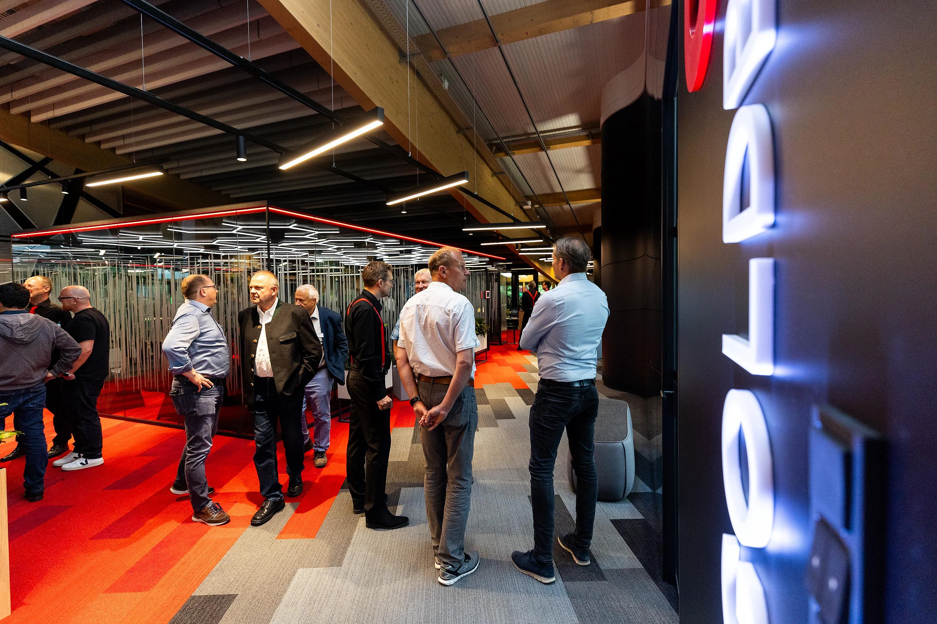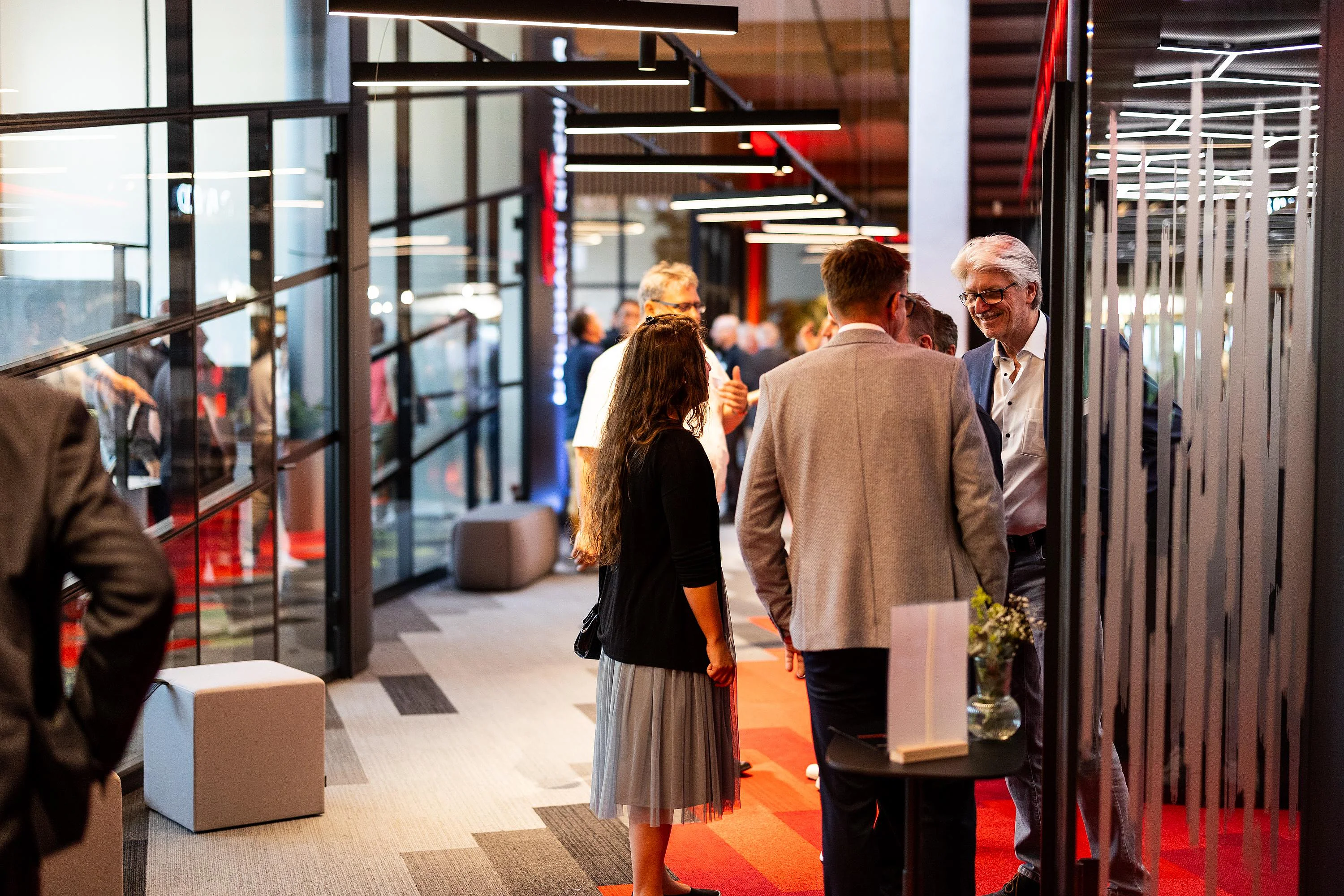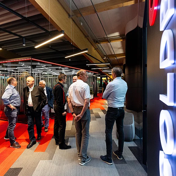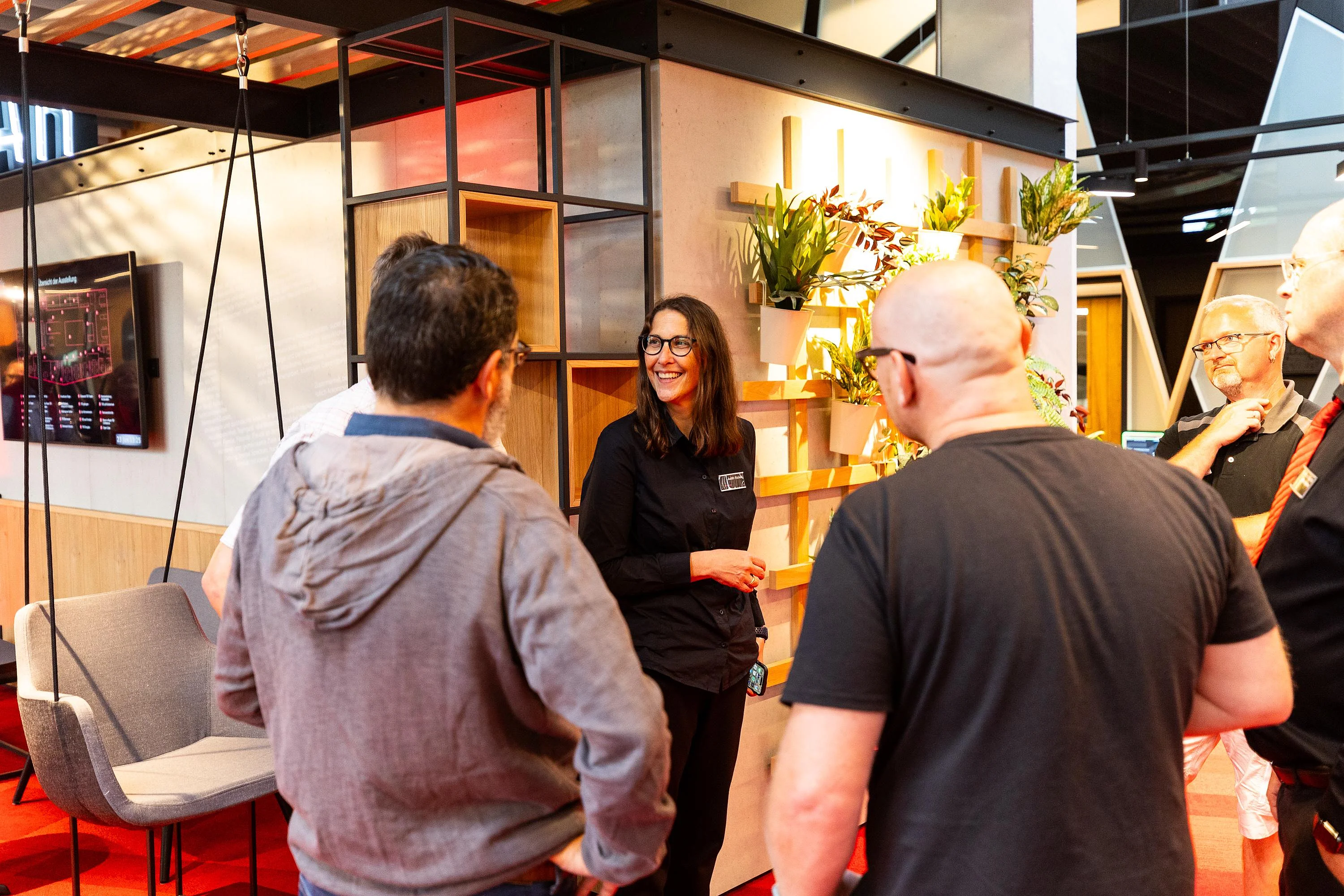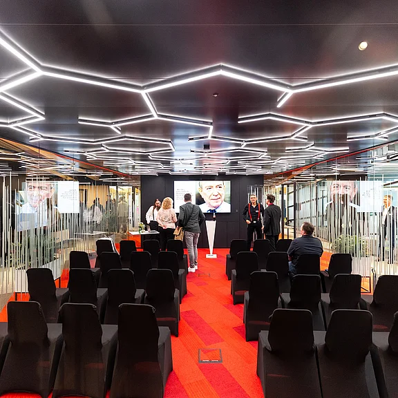 Die geladenen Gäste erwartete eine neue und außergewöhnliche Kombination aus lebendiger Ausstellung und Büroarbeitsplätzen. Eine Welt des Arbeitens mit fließenden Formen, visuell wirksamen Strukturen und kommunikationsfördernden Innovationen.