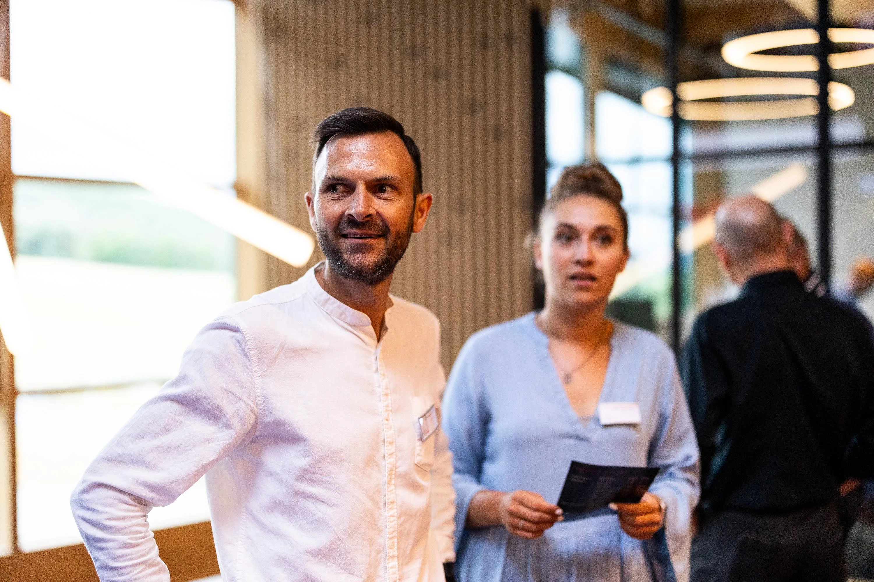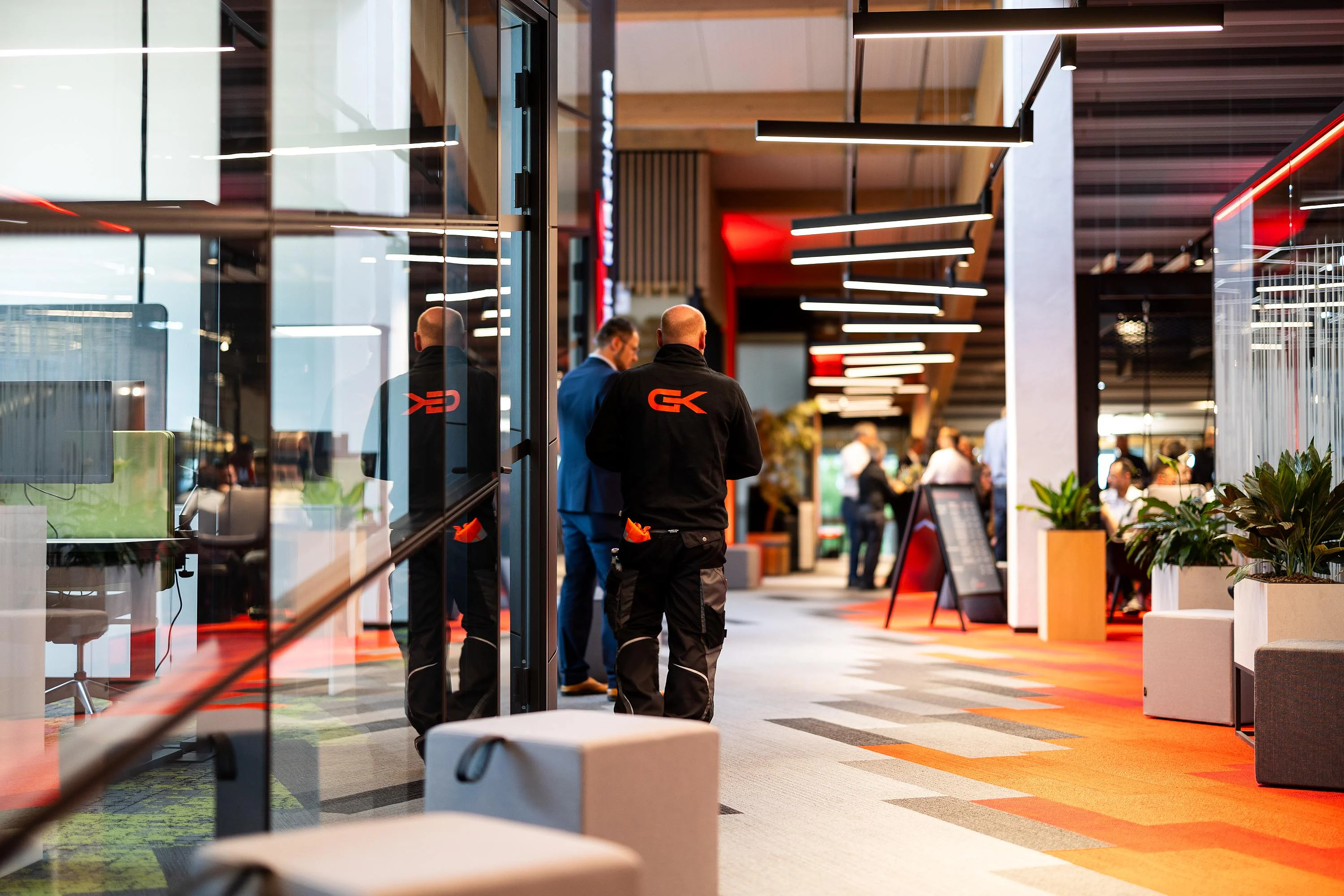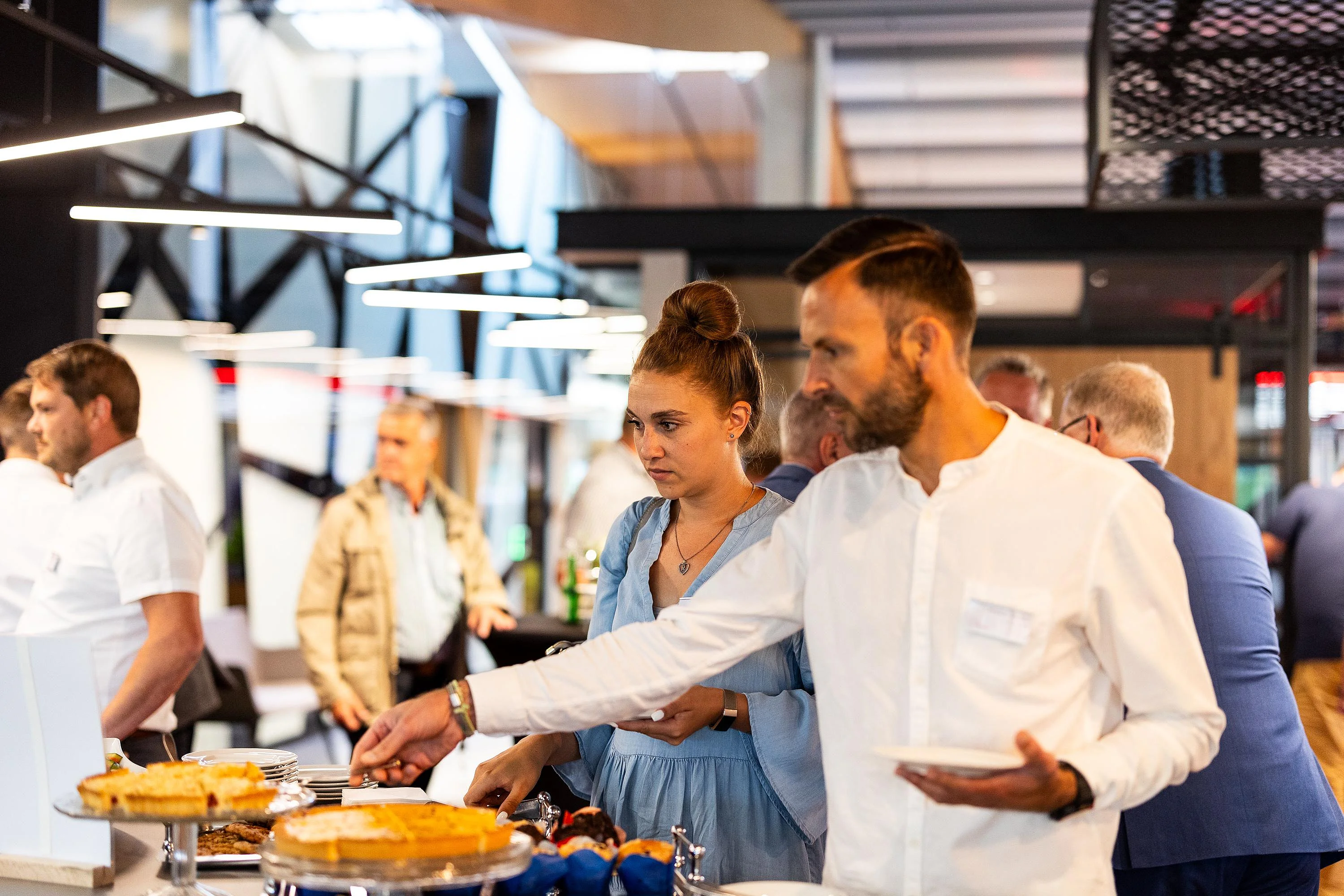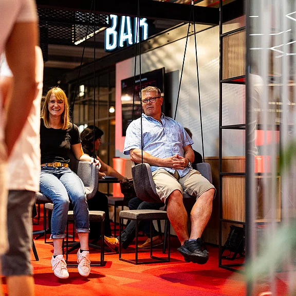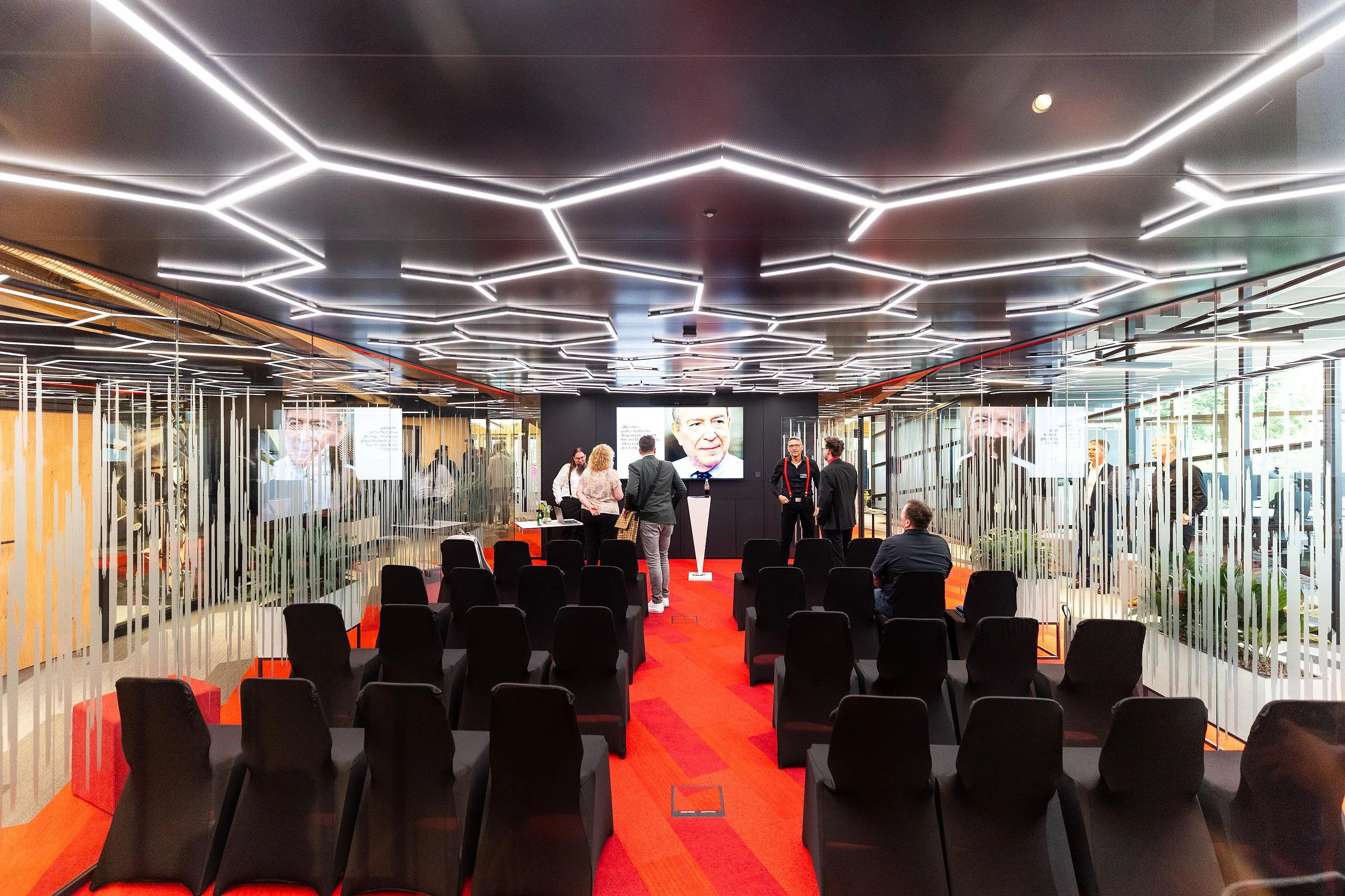 Die geladenen Gäste erwartete eine neue und außergewöhnliche Kombination aus lebendiger Ausstellung und Büroarbeitsplätzen. Eine Welt des Arbeitens mit fließenden Formen, visuell wirksamen Strukturen und kommunikationsfördernden Innovationen.