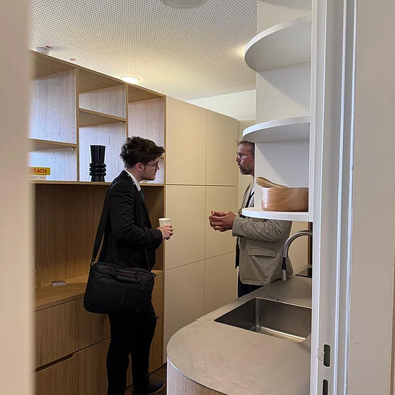 Zum ersten Mal war Goldbach Kirchner als Aussteller bei P5 The Property Kongress - dem größten Immobilienkongress Deutschlands - vertreten . Und zwar als Premiumpartner, mit einem Messestand und einem komplett ausgebauten Mikroapartment direkt in einer Loge der PSD Bank Arena. Außerdem hat unser Bereichsleiter im Innenausbau Erik Bechtold eine interessante und praxisnahe Masterclass zum Thema „Projektserien statt Serienprodukt – Maßgeschneiderte Modularität für den Bestand“ gehalten. Goldbach Kirchner nutzte dieses Event, um seine Bekanntheit als Umsetzer im Objektbereich zu steigern, in den wertvollen Austausch innerhalb der Branche zu gehen und wertvolle Kontakte zu knüpfen.